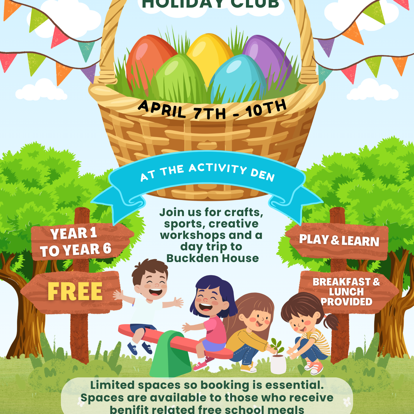 Den Buddies are warm, welcoming holiday clubs during school breaks, packed with creative fun, outdoor play, themed days, and more!